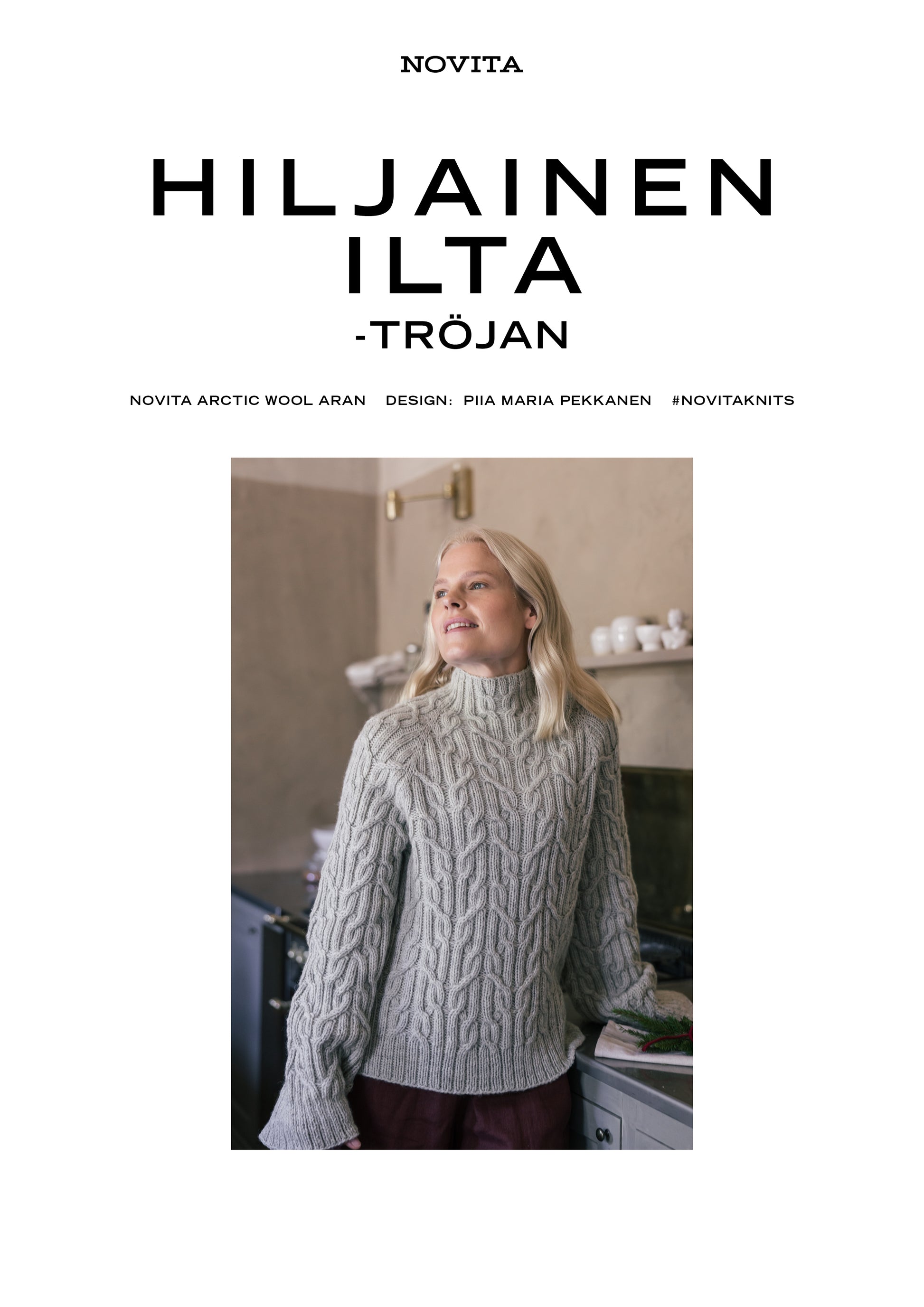 Hiljainen ilta is the most gorgeous cable knit of the winter, a stylish addition to both men’s and women’s wardrobes. The soft and earthy Arctic Wool Aran yarn