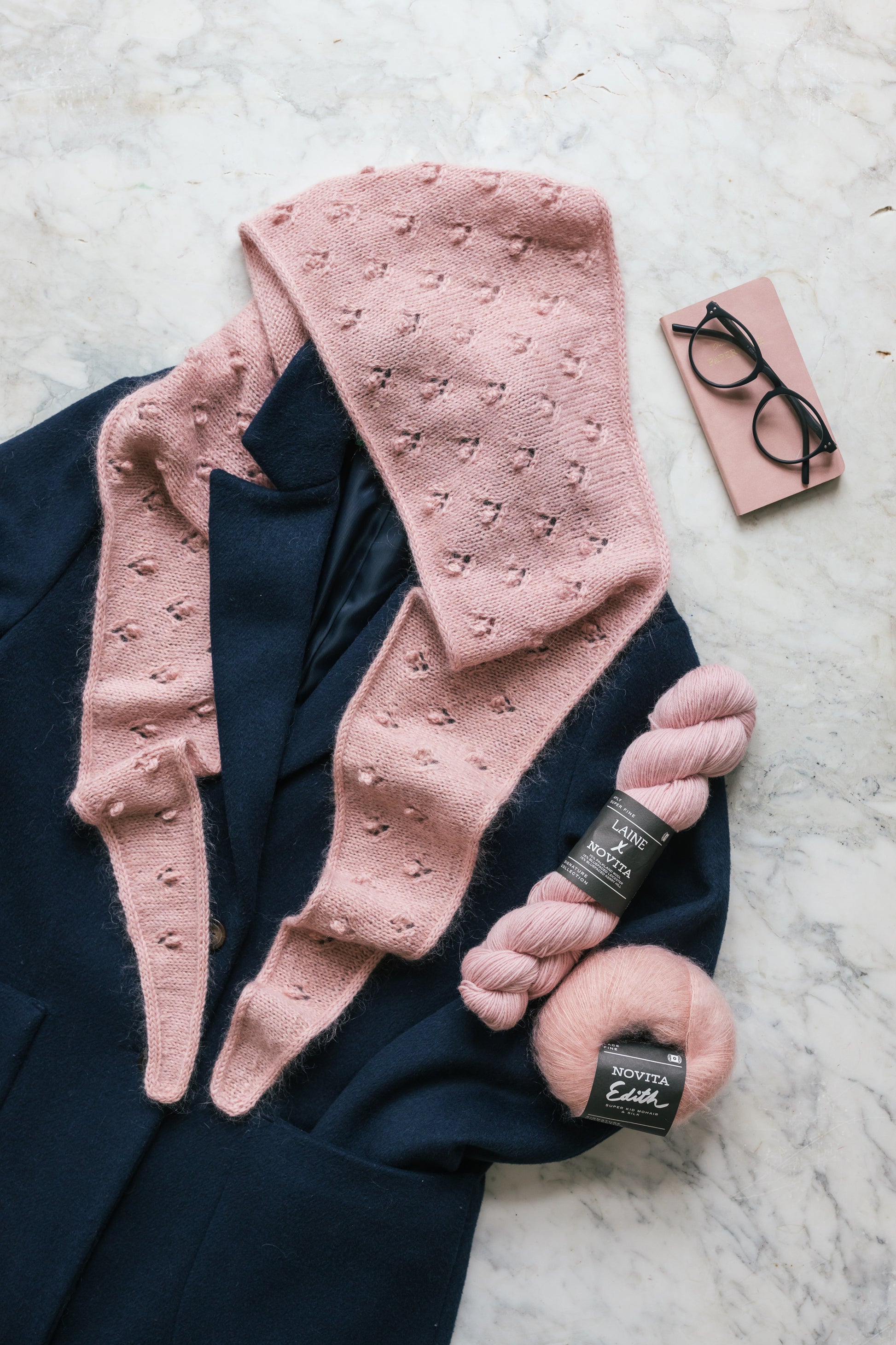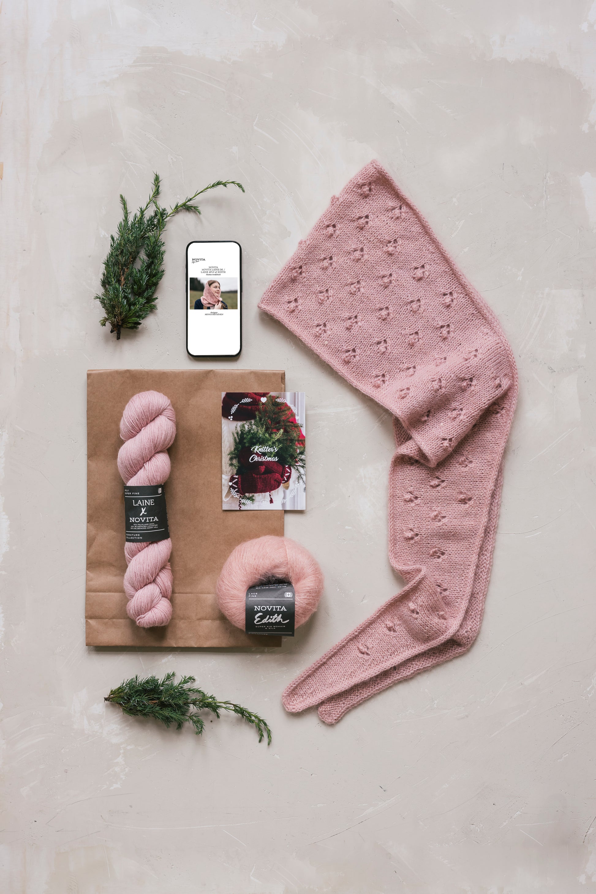 Korkealaatuisen ja ylellisen Signature Edition -version huivista voit neuloa joko Novita x Laine DK -langalla tai Novita x Laine 4PLY ja Edith -mohairsekoitelangalla yhdessä.