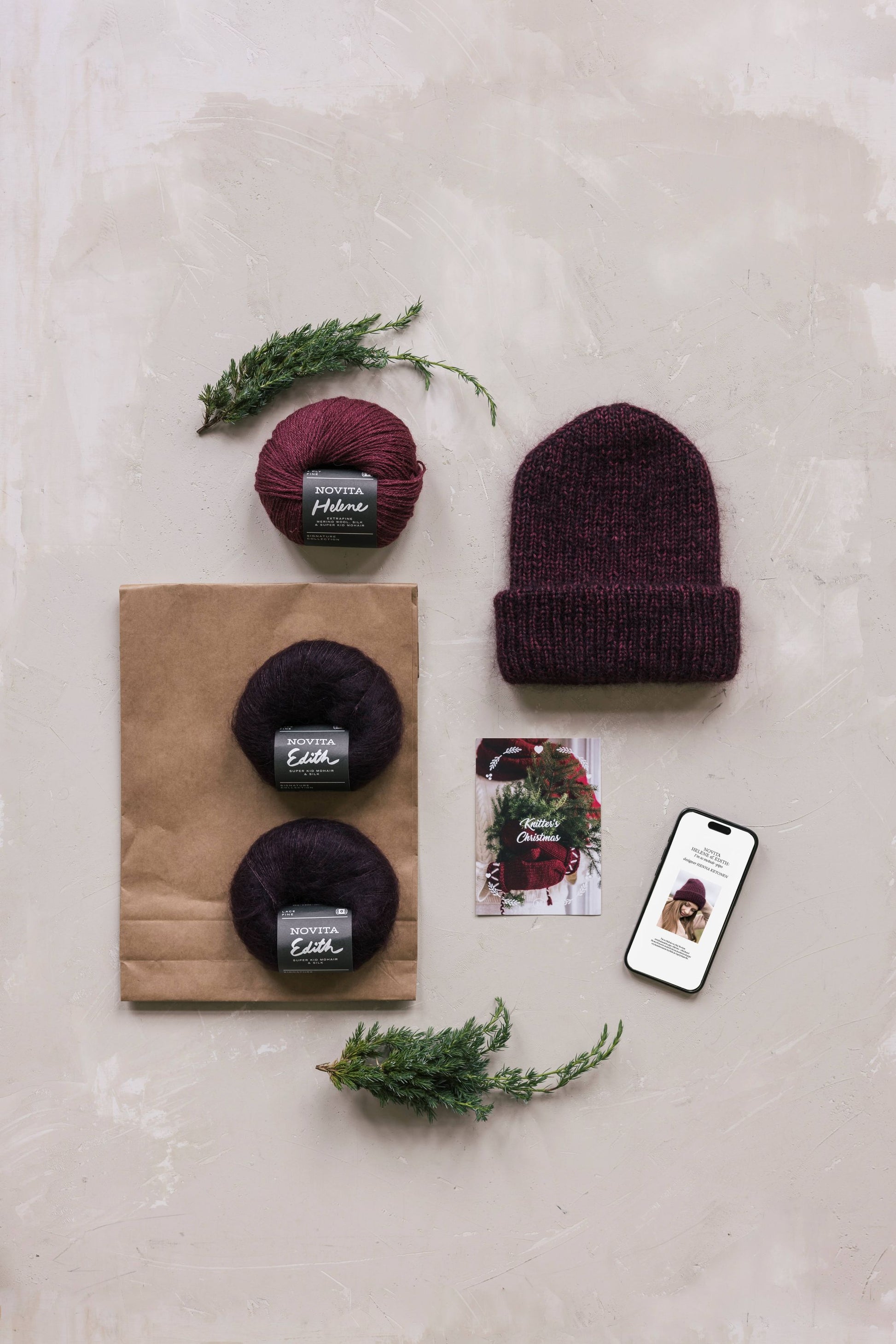 Tämä valmis neulontasetti sisältää ladattavan PDF-ohjeen lisäksi yhden kerän Novita Helene -lankaa sekä kaksi kerää Novita Edith -mohairsekoitelankaa. Neulontasetin todellinen arvo on 42,80 euroa ja sen ostajat saavat kaupan päälle myös lahjapussin sekä jouluisen postikortin.