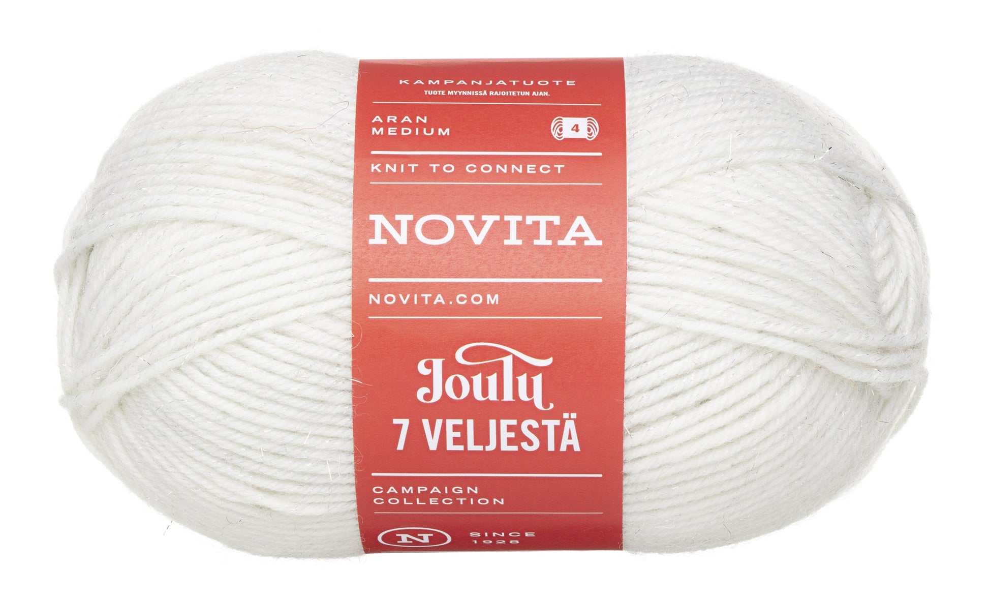 Novita 7 Veljestä Joulu -sukkalankaan on kehrätty mukaan ripaus kimaltavaa jouluntaikaa. Klassikkolangan jouluversiossa on jouluun sopivien sävyjen lisäksi häivähdys metallihohtoista kimalletta, joka antaa tästä langasta neulottuihin tuotteisiin juhlavan ilmeen. 7 Veljestä Joulu sopii monipuolisesti erilaisiin neuletöihin ja erityisesti villasukkiin. Lanka sisältää 80 % villaa, 18 % polyamidia ja 2 % polyesteriä. Puikkosuositus langalle on 4 mm, sukkiin 3.5 mm. Neuletiheys 10x10cm on 18 silmukkaa ja 26 kerrosta tai käsialasta riippuen. 150 gramman kerässä on 300 metriä lankaa. Tuotteet voidaan konepestä 40 asteessa. Novita 7 Veljestä Joulu-lanka on Avainlipputuote.