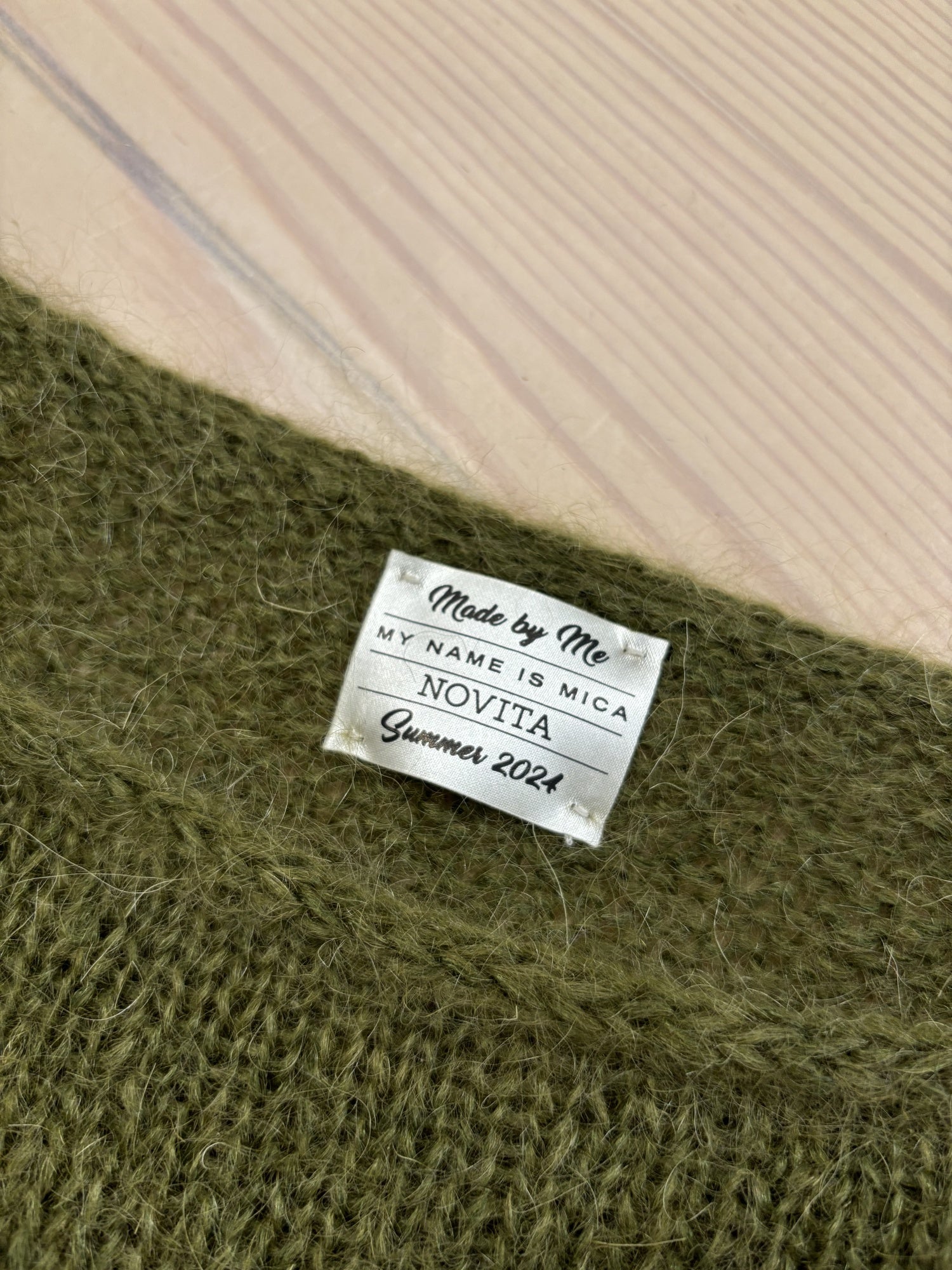 Nappaa mukaasi tyylikäs Mica-kangasmerkki! Kesällä 2024 neulotun Mica-KALin neulojille ilmainen kangasmerkki, jonka voit ommella valmiiseen neuleeseesi.