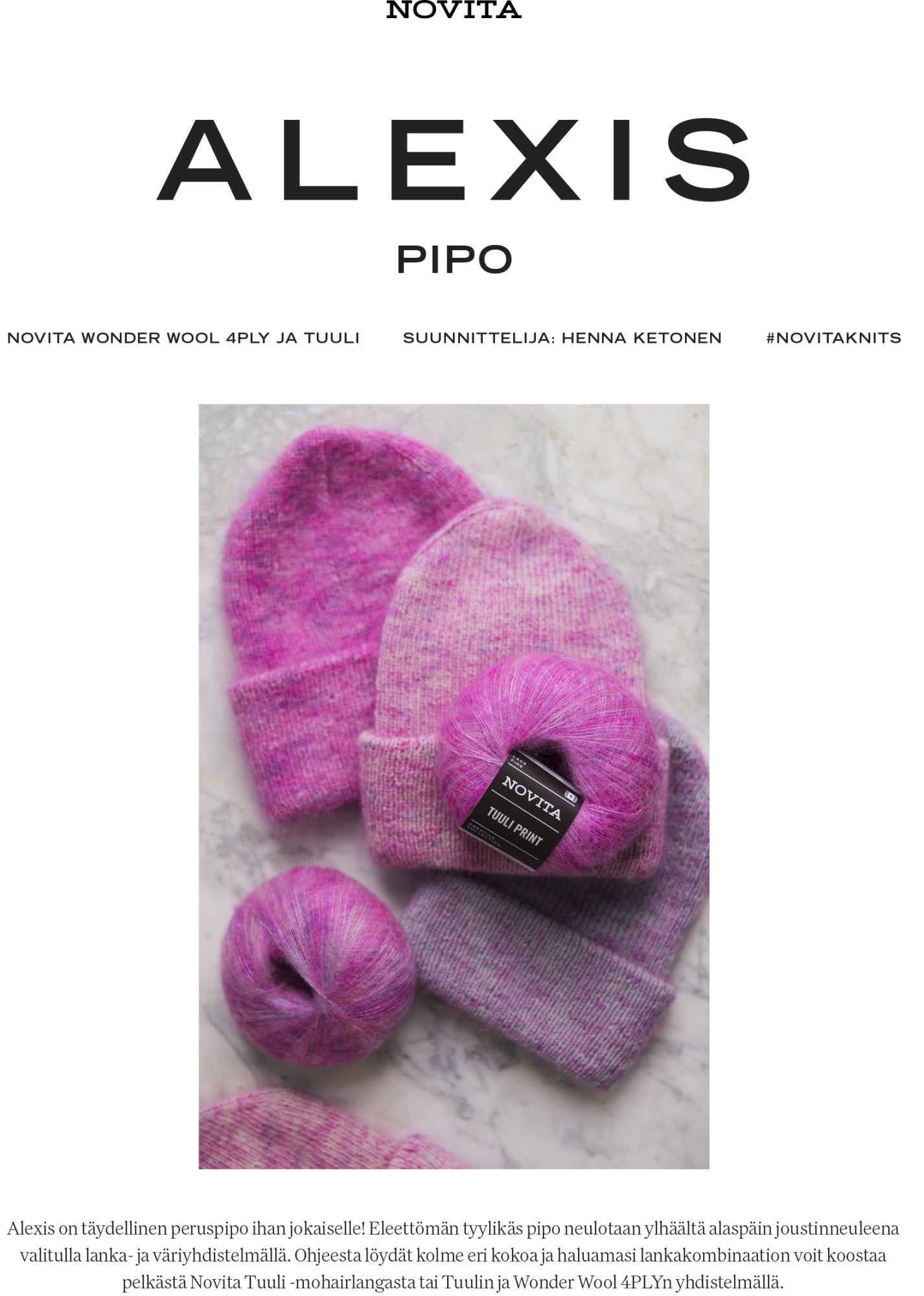 Novita Alexis neulepipo ohjevihko