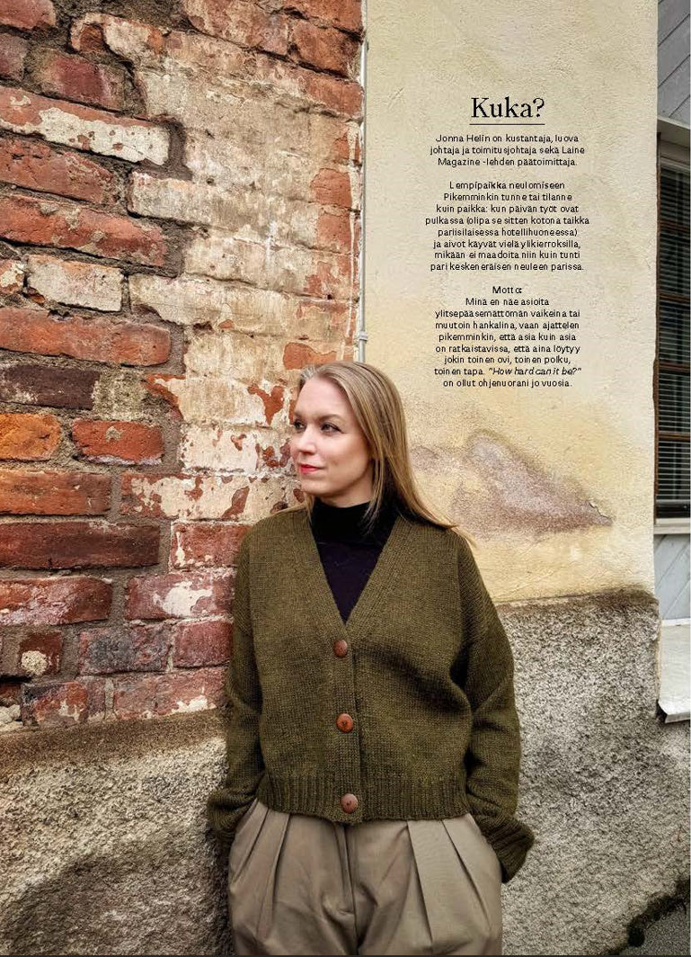Novita Syksy 2025 -lehden neuleet ovat kuin kunnianosoitus käsityöperinteelle, muistoille ja merkityksille. Lehden neulomaan kutsuvat mallistot ammentavat inspiraatiota sekä Novitan omista satavuotisista neuleperinteistä, että modernin arkkitehtuurin selkeydestä – kahdesta tavasta kertoa tarinaa. Neuleiden kiehtovat kirjoneuleet ja palmikot tulkitsevat neuleperinteitä tämän päivän hengessä, kun taas minimalistiset mallit puhuttelevat yksinkertaisuuden ja harkittujen yksityiskohtien ystäviä. Valokuvaaja Meeri Koutaniemen ja Novitan yhteistyömallisto nostaa esiin omaehtoiset naisesikuvat ja neulomisen voiman omannäköisen ilmaisun välineenä. Lehden Designer Story -haastattelussa neulemaailman monilahjakkuus Jonna Helin kertoo oman tarinansa.